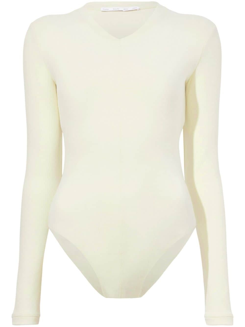 Delaney bodysuit Highlights - Citrin pale yellow - Stretch-design - Brushed rib - V-neck - Long sleeves - Rear slit - Embroidered logo to the rear - Finished edge - Thong style - Just a reminder that this piece must be tried on over your own garments. Imported Composition Polyester 75%, Rayon 20%, Spandex/Elastane 5%