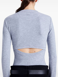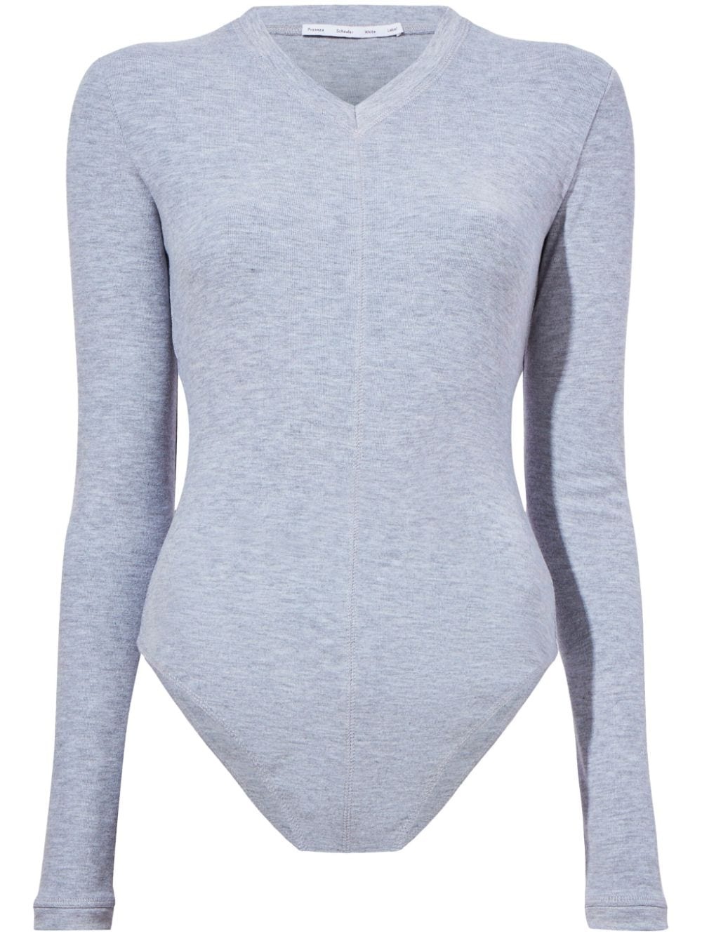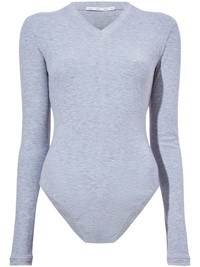 Delaney bodysuit Highlights - Ice blue - Stretch-design - Brushed rib - V-neck - Long sleeves - Rear slit - Embroidered logo to the rear - Finished edge - Thong style - Just a reminder that this piece must be tried on over your own garments. Imported Composition Rayon 66%, Polyester 29%, Spandex/Elastane 5%
