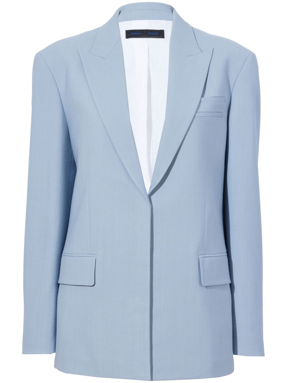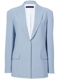 Devon peak-lapel blazer Highlights - Light blue - Peak lapels - Long sleeves - Split cuffs - Front hook and eye fastening - Two side flap pockets - Full lining - Straight hem Made in Italy Composition Viscose 79%, Virgin Wool 19%, Elastane 2% Washing instructions Dry Clean Only