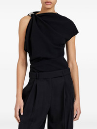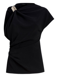 draped embellished top Highlights - Black - Draped neckline - One-shoulder design - Asymmetric sleeves - Shoulder embellishment Imported Composition Triacetate 70%, Polyester 30% Washing instructions Read Manufacturer Guidelines