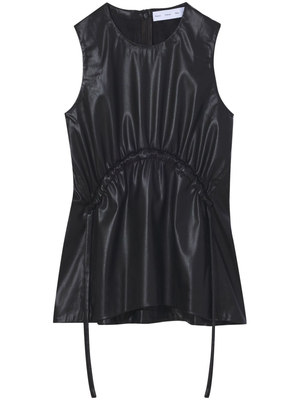 drawstring-detail faux-leather top Highlights - Black - Faux leather - Ruched detailing - Front lace-up fastening - Drawstring fastening waist - Round neck - Sleeveless - Rear zip fastening - Straight hem Imported Composition Outer: Polyurethane 100% Lining: Polyester 100% Washing instructions Dry Clean Only