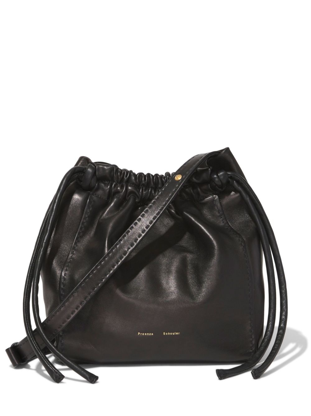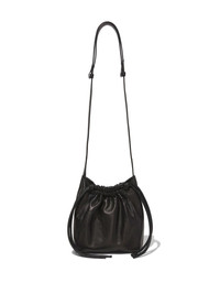drawstring shoulder bag black calf leather engraved logo drawstring fastening main compartment Made in Italy Composition Outer: CALFSKIN 100% SIZE & FIT Measurement DEPTH 2.75 in(7 cm) HEIGHT 10.03 in(25.5 cm) STRAP 15.74 in(40 cm) WIDTH 8.85 in(22.5 cm)
