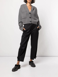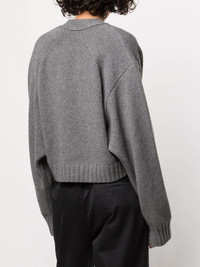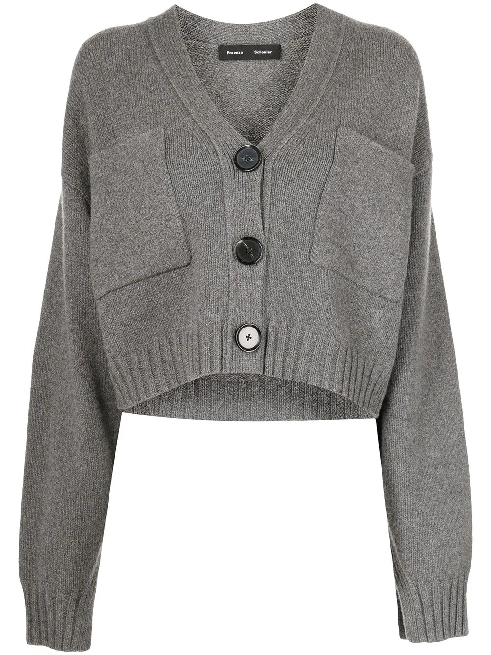 Eco cashmere cardigan The Eco cardigan from Proenza Schouler is crafted from an Italian-made blend of upcycled cashmere pieces and new fibres, reflecting the brand's path into sustainability. The cropped, boxy silhouette brings an effortless air to the classic V-neck shape, adorned with oversized patch pockets to the front. Highlights - Grey - Upcycled cashmere - Knitted construction - Cropped - V-neck - Front button fastening - Long sleeves - Two front patch pockets - Ribbed cuffs - Ribbed hem Imported Composition Cashmere 100% SIZE & FIT Model measurements Height 5 ft 10 in(1.77 m) Bust/Chest 31.88 in(81 cm) Hips 34.64 in(88 cm) Waist 24.01 in(61 cm) Measurement SLEEVE LENGTH 23.22 in(59 cm) LENGTH 19.68 in(50 cm)