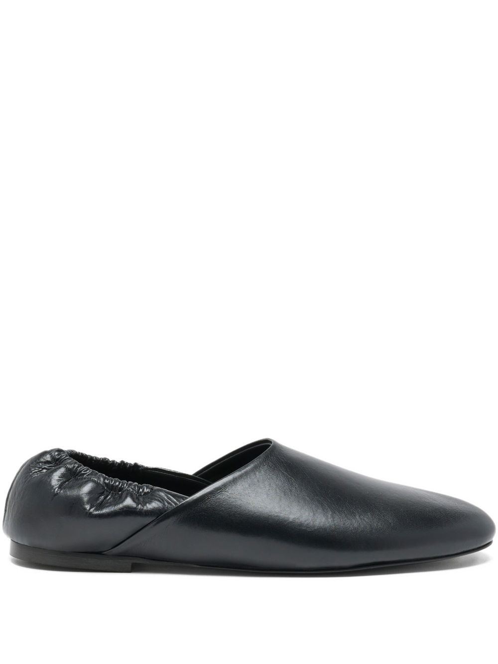 elasticated-back leather slippers Highlights - Black - Elasticated back - Slip-on style - Flat sole Made in Italy Composition Lining: Lambskin 100% Sole: Rubber 100% Outer: CALFSKIN 100%