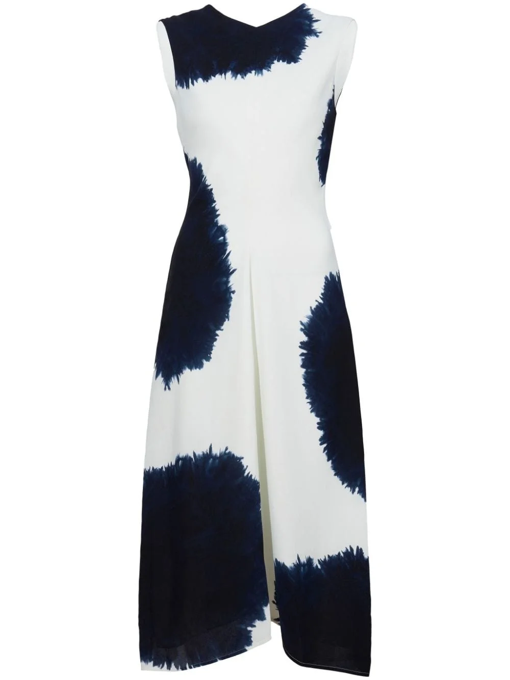 Ella Dress In Printed Viscose Crepe Highlights - White/blue - Crepe texture - Abstract pattern print - Dart detailing - Round neck - Sleeveless - Below-knee length - Flared hem - Full lining - Concealed rear zip fastening Imported Composition Viscose 100% Washing instructions Dry Clean Only