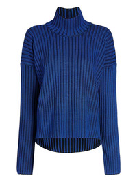 Elysia ladder stripe sweater Highlights - Blue - Stripe pattern - High neck - Long sleeves - Knit construction - Ribbed trims Imported Composition Fabric 100% Washing instructions Read Manufacturer Guidelines