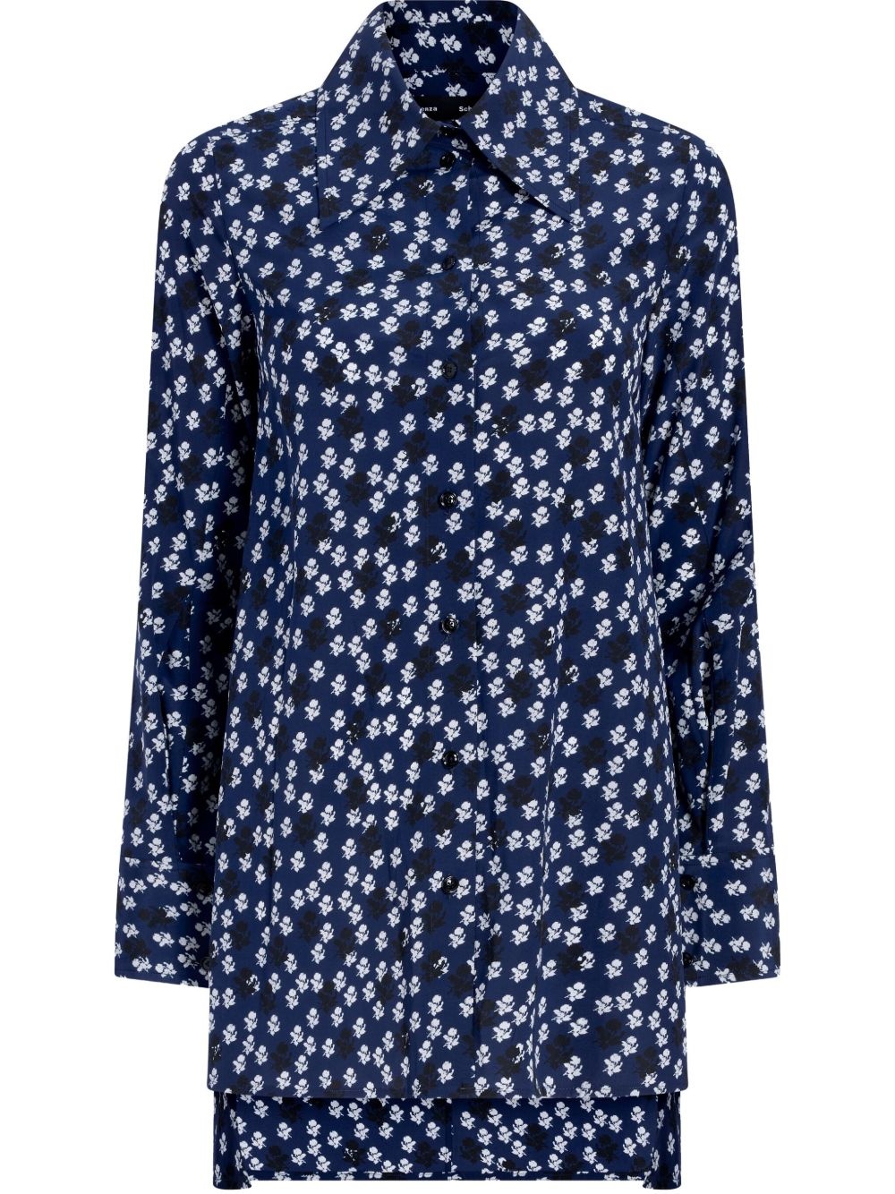Emmeline shirt Highlights - Navy blue - Front button fastening - Buttoned cuffs - High-low hem - All-over floral print Imported Composition Viscose 50%, Silk 42%, Spandex/Elastane 8%