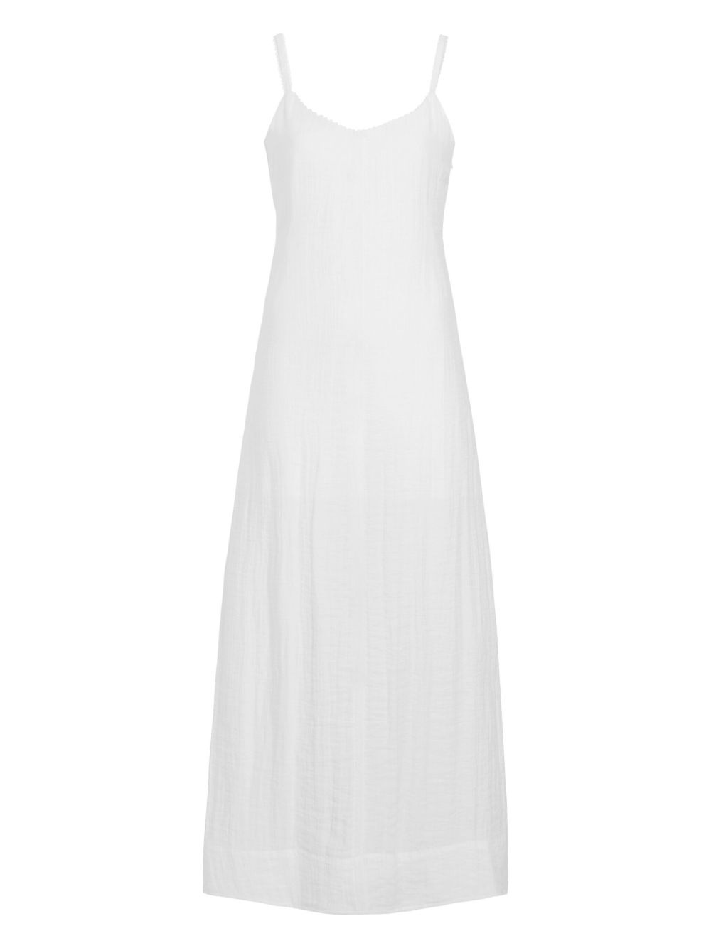Evelyn dress Highlights - White - Rear tie fastening - Scoop neck - Thin shoulder straps - Mid-length Imported Composition Polyester 100%, Viscose 100% Washing instructions Read Manufacturer Guidelines