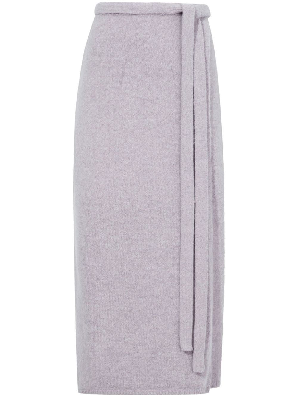 Zadie knit wrap skirt Highlights - Powder pink - Fine knit - Wraparound style - Self-tie fastening - High waist - Straight hem Imported Composition Polyamide 39%, Acrylic 31%, Wool 30% Washing instructions Dry Clean Only