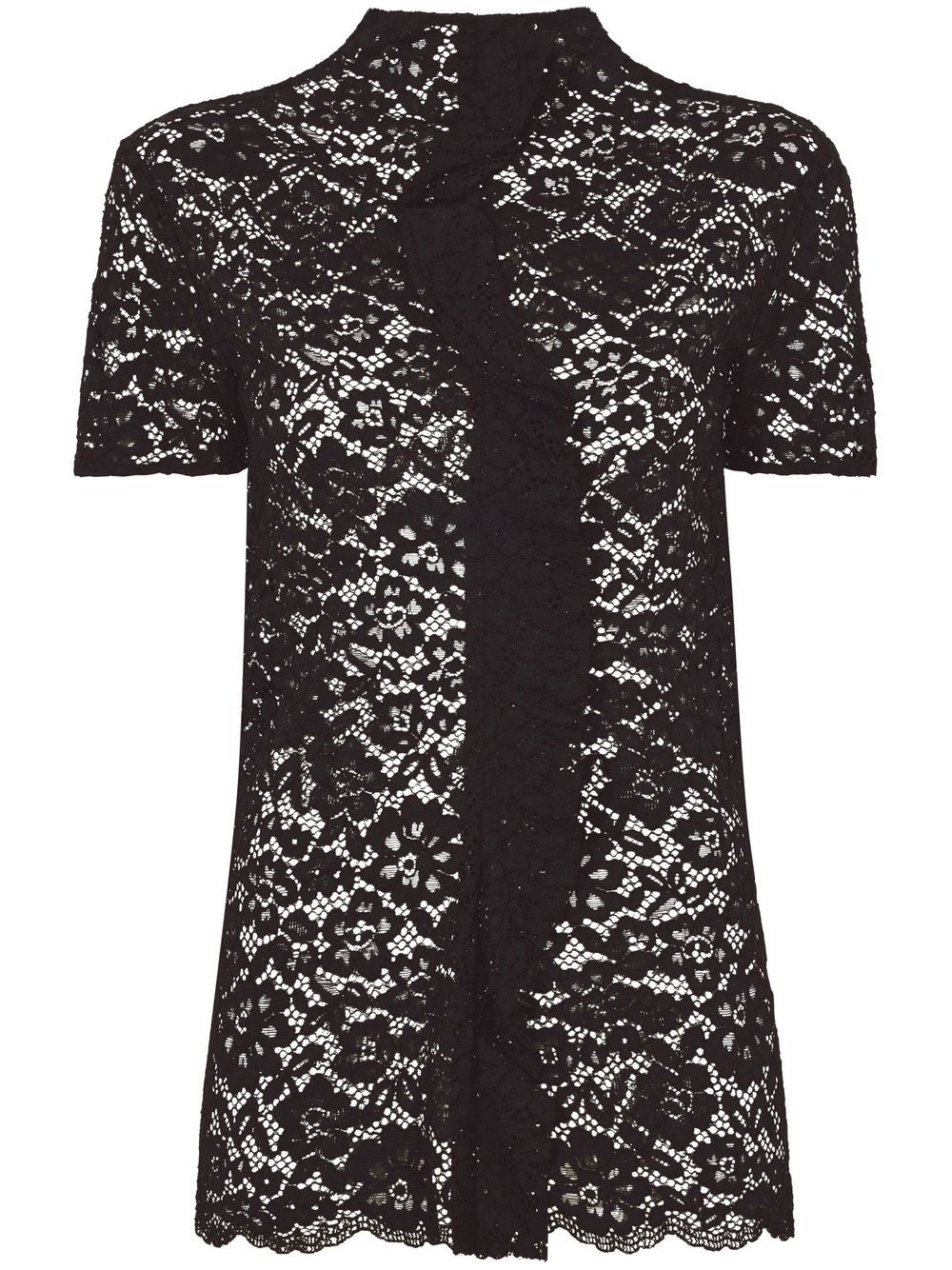 stretch lace top Highlights - Black - Floral-lace detailing - Ruffled detailing - Mock neck - Short sleeves - Concealed rear zip fastening - Scallop hem Imported Composition Polyamide 60%, Viscose 40% Washing instructions Read Manufacturer Guidelines