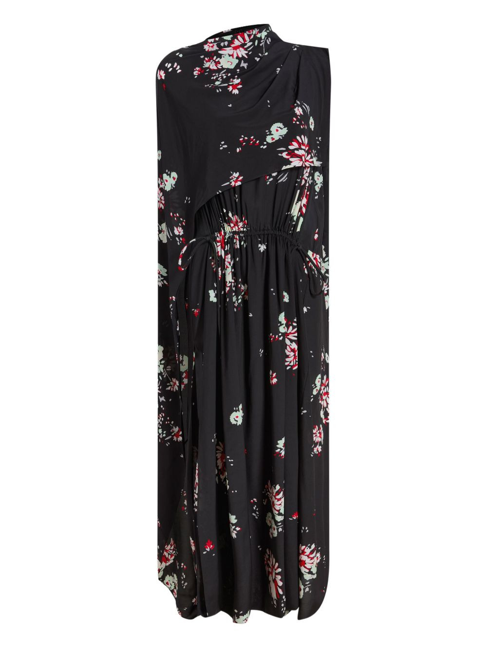 floral-print cape midi day dress Highlights - Black - Floral pattern - Cape detail - Cinched waist Imported Composition Viscose 56%, Silk 33%, Spandex/Elastane 11% Washing instructions Read Manufacturer Guidelines