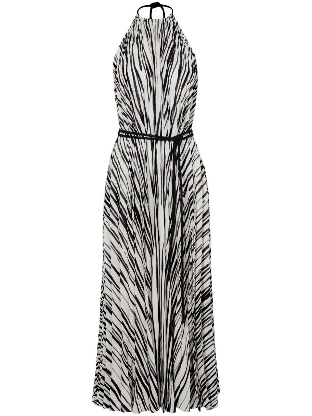 Frida halterneck midi dress Highlights - Black/white - Fully pleated - Stripe print - Halterneck tie fastening - Belted waist - Open back - Mid-length Imported Composition Polyester 100% SIZE & FIT Measurement HIPS 55.11 in(140 cm) LENGTH 55.11 in(140 cm) WAIST 23.62 in(60 cm) Washing instructions Read Manufacturer Guidelines