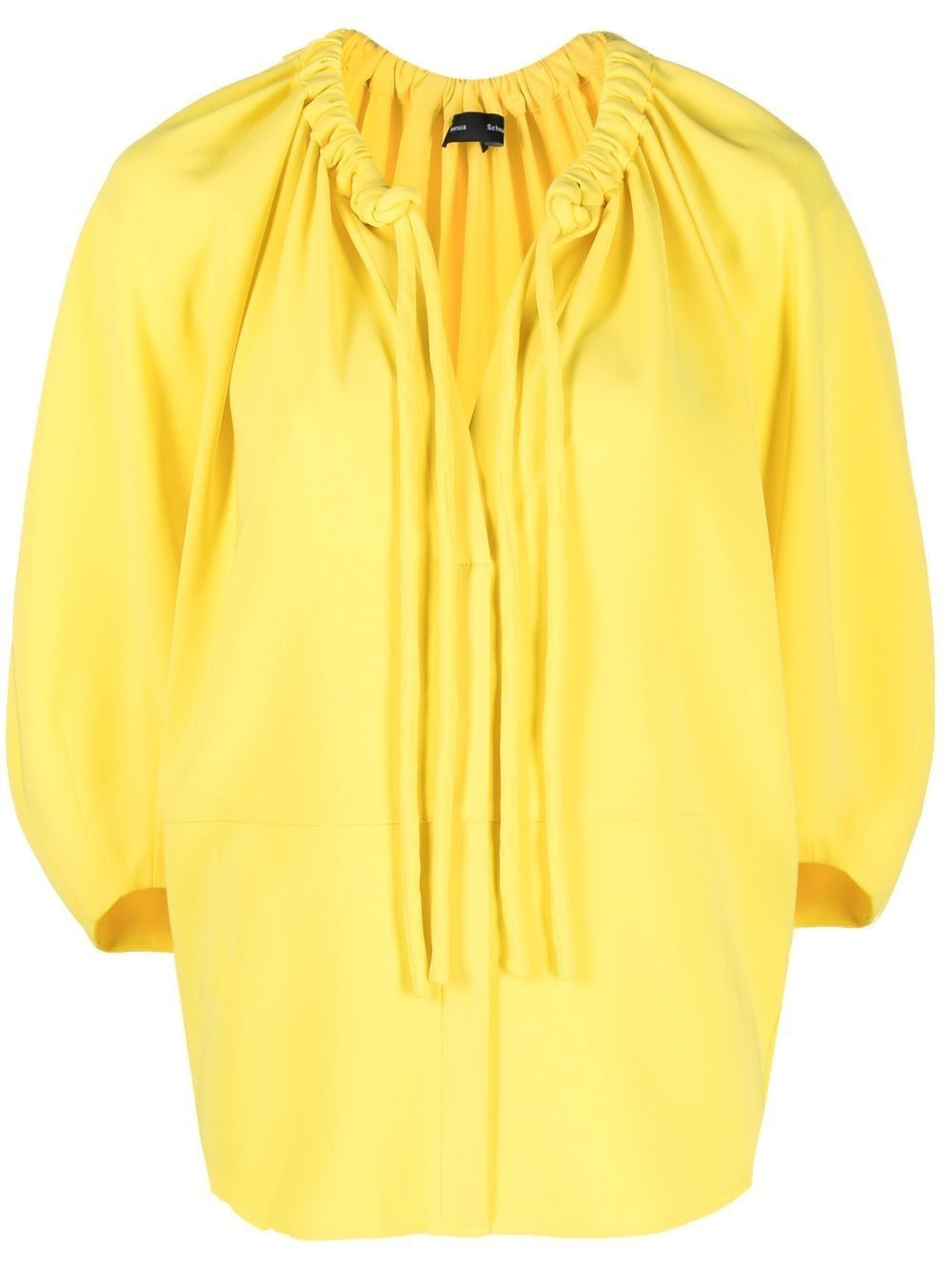 gathered-detail tie-fastening blouse Proenza Schouler is known for pairing 'attention to detail with a sense of refined ease'. This is showcased through gathered detailing to add to the effortlessly sophisticated feel of this tie-fastening blouse. Imported Composition Outer: Triacetate 70%, Polyester 30% Washing instructions Dry Clean Only