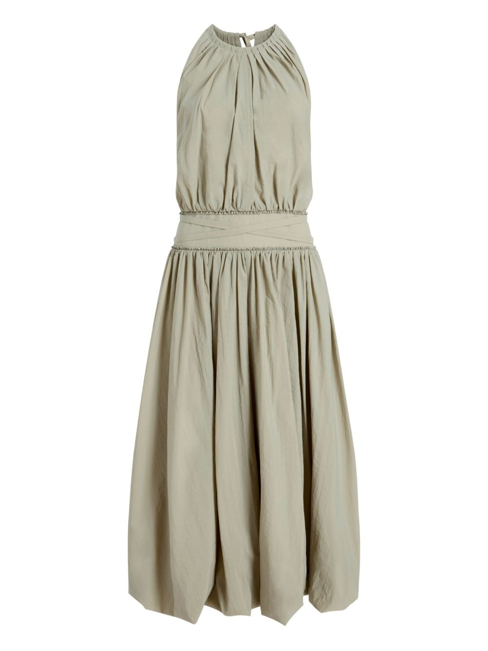 gathered halterneck midi dress Highlights - Sage green - Gathered detailing - Elasticated waistband - Sleeveless design - Side pockets Imported Composition Spandex/Elastane 100%, Cotton 100%, Nylon 100% Washing instructions Read Manufacturer Guidelines