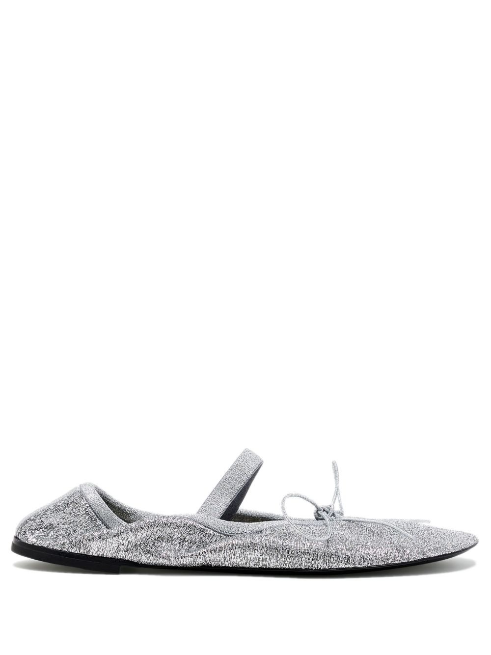 Glove glitter ballet flats Highlights - Silver - Round toe - Lace-up detail - Flat sole - Subtle shimmer - Cushioned insole Imported Composition Outer: Polyurethane 100%, Metallic Fibre 100% Lining: Polyurethane 100% Sole: CALFSKIN 100%