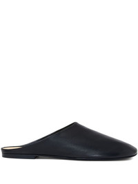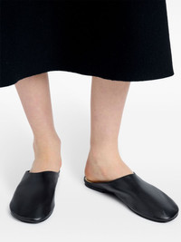 Glove leather slides Highlights - Black - Lambskin - Slip-on style - Round toe - Low stacked heel - Moulded footbed - Branded leather insole - Rubber sole Made in Italy Composition Leather 100%