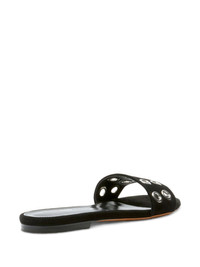 Grommet slides Highlights - Black - Slip-on style - Eyelet detailing - Round open toe - Branded insole Imported Composition Sole: CALFSKIN 100%, Rubber 100% Lining: Calf Leather 100% Outer: Goat Skin 100%