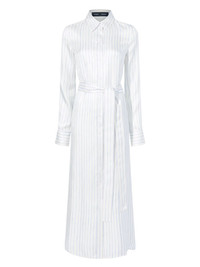 Hannah dress Highlights - White - Silk - Vertical stripe pattern - Front button fastening - Belted waist - Straight-point collar - Long sleeves - Ankle-length - Rear slit - Straight hem Imported Composition Silk 100%