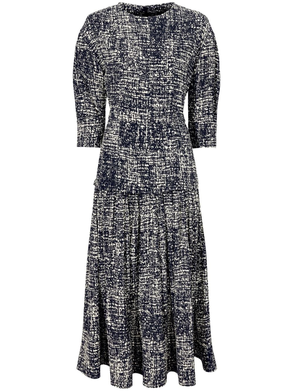 Harlow dress Highlights - Black/white - Crepe texture - Abstract pattern print - Round neck - Short sleeves - Fitted waistline - Pleated skirt - Mid-length - Straight hem Imported Composition Viscose 100%