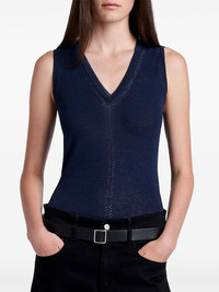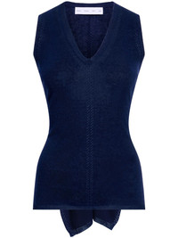 Heyde vest Highlights - Navy blue - Twist detailing - Draped detailing - Picot trim - V-neck Imported Composition Linen/Flax 83%, Polyamide 17%