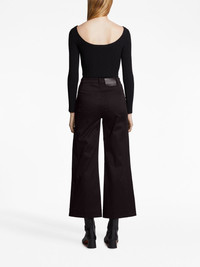high-waisted cropped trousers Highlights - Black - Stretch-cotton - Logo patch to the rear - High waist - Belt loops - Front button and zip fastening - Wide leg - Cropped leg Imported Composition Cotton 97%, Spandex/Elastane 3% Washing instructions Dry Clean Only