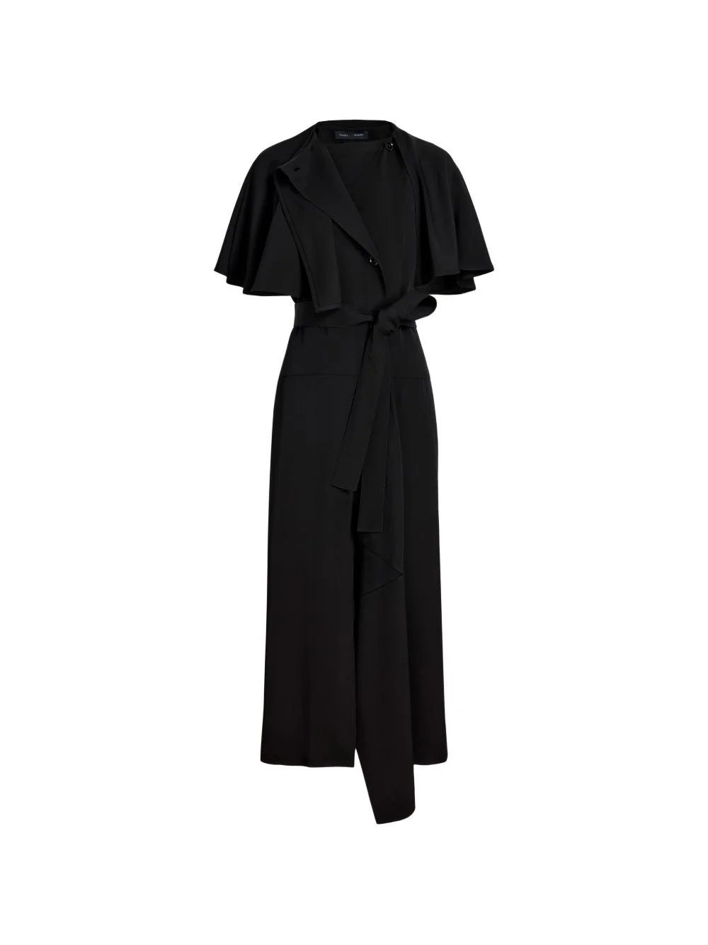 Isolde cape dress Highlights - Black - Round neck - Cape detail - Tied waist - Short sleeves - Mid-length - Straight hem Imported Composition Viscose 100% Washing instructions Read Manufacturer Guidelines