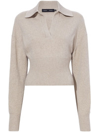 Jeanne cashmere polo jumper Highlights - Almond beige - Cashmere - Drop shoulder - Cropped - Spread collar - V-neck - Long sleeves - Ribbed cuffs and hem Made in Italy Composition Organic Cashmere 97%, Wool 3% Washing instructions Dry Clean Only