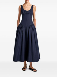 Kendall midi dress Highlights - Navy blue - Concealed side fastening - Two side inset pockets - Wide shoulder straps - Pleat detailing Imported Composition Cotton 71%, Polyester 29%