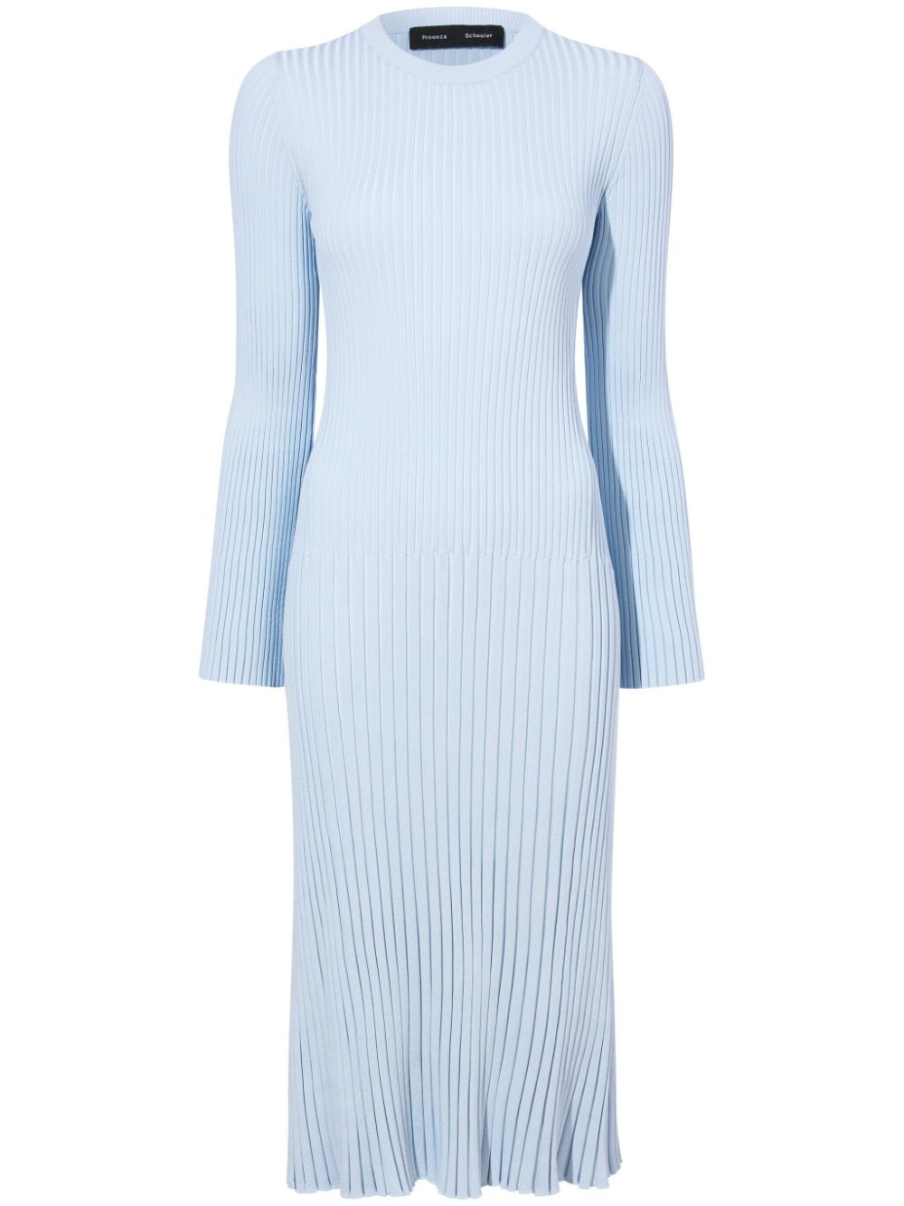 Kenna midi dress Highlights - Pale blue - Ribbed knit - Round neck - Long sleeves - Split cuffs - Straight hem - Below-knee length Imported Composition Viscose 80%, Polyamide 11%, Polyester 9%