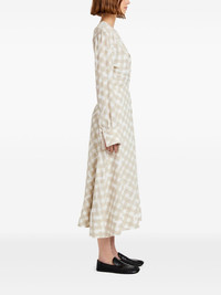 Keria midi dress Highlights - Light beige - Concealed front button fastening - Buttoned-cuff sleeves - Lattice pattern print - Gathered detailing Imported Composition Viscose 100%