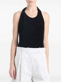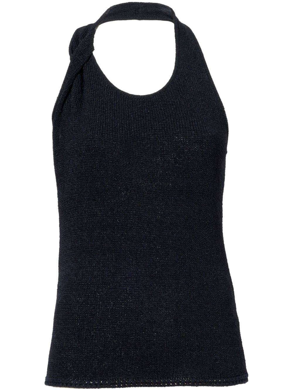 knitted halterneck top white knitted construction halterneck single twisted shoulder strap open back crochet trim straight hem Imported Composition Viscose 88%, Nylon 11%, Silk 1%