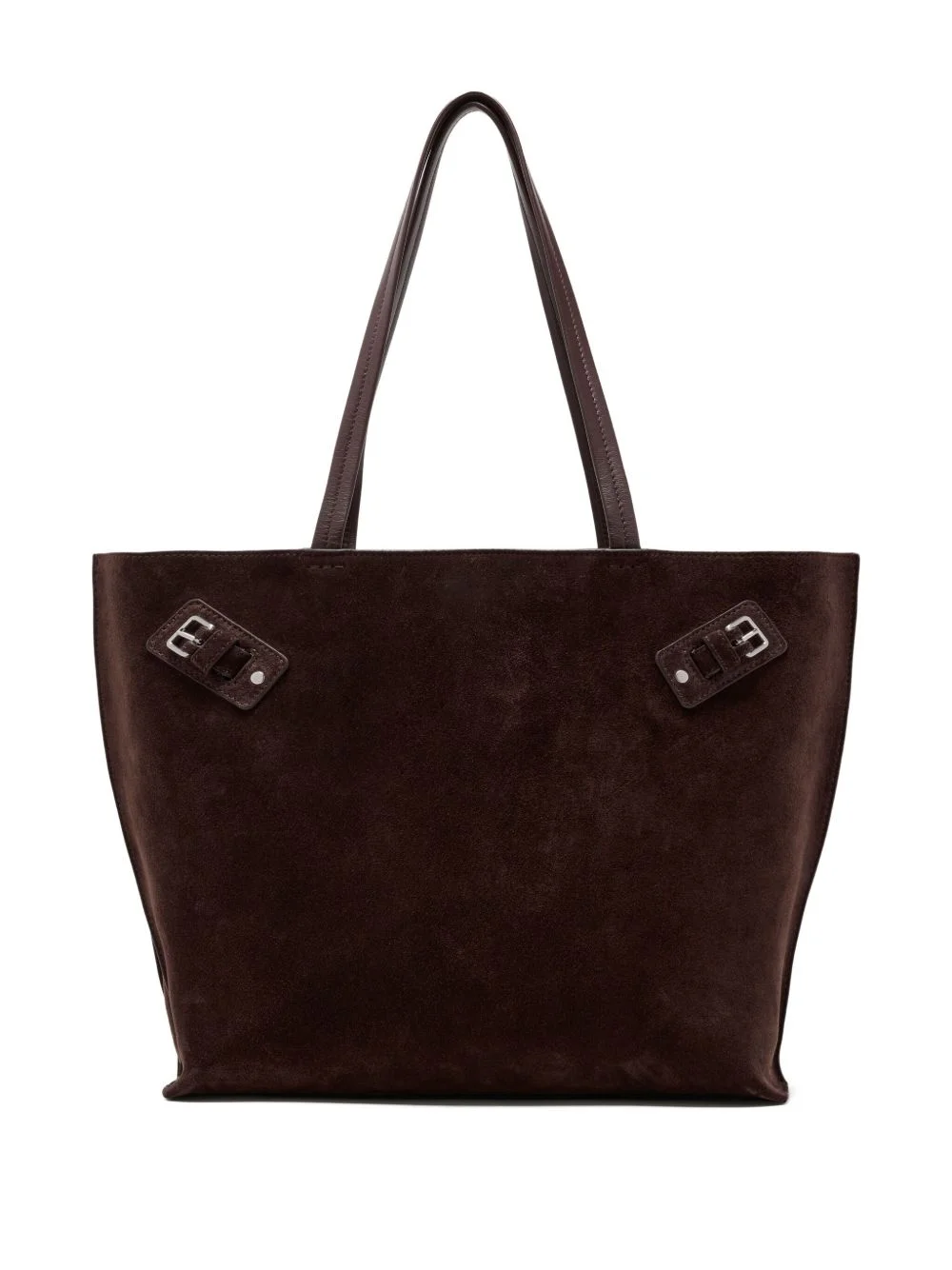 large Days buckle-detail suede tote bag Highlights - Brown - Suede texture - Top handles - Buckle fastening - Leather trim Made in Italy Composition Outer: Calf Suede 100% SIZE & FIT Measurement DEPTH 6.29 in(16 cm) HANDLE 10.82 in(27.5 cm) HEIGHT 12.2 in(31 cm) WIDTH 17.91 in(45.5 cm)