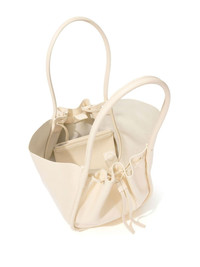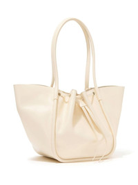 large ruched tote bag Highlights - Cream white - Leather - Two long top handles - Drawstring fastening - Magnetic fastening - Main compartment - Removable pouch Made in Italy Composition Outer: CALFSKIN 100% SIZE & FIT Measurement HANDLE 10.23 in(26 cm) HEIGHT 10.23 in(26 cm) DEPTH 7.28 in(18.5 cm)