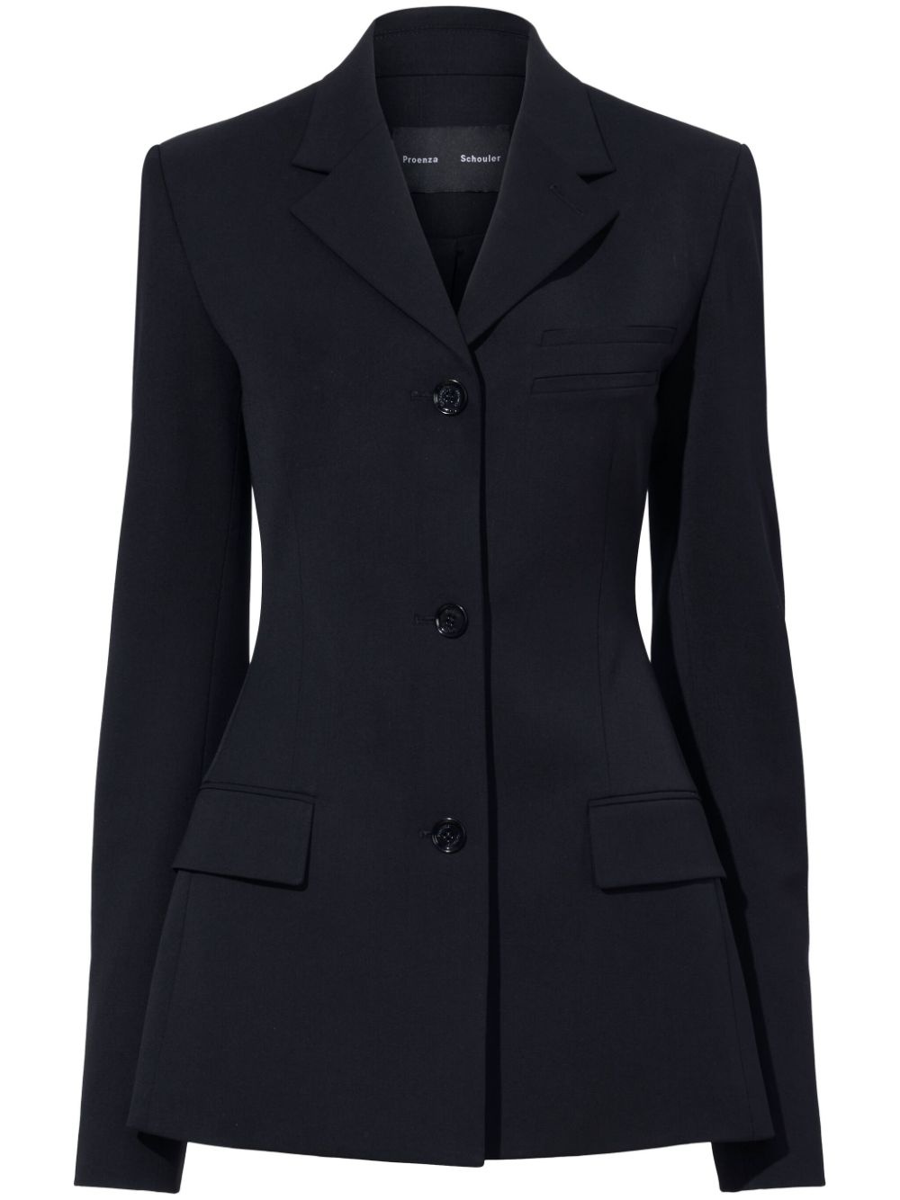 Lark blazer Highlights - Black - Virgin wool blend - Front button fastening - Notched lapels - Long sleeves - Faux-chest welt pocket - Dart detailing - Two faux-front flap pockets - Full lining - A-line - Straight hem Made in Italy Composition Virgin Wool 76%, Polyamide 22%, Elastane 2% Washing instructions Dry Clean Only
