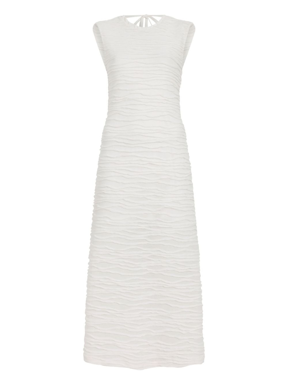 Laura textured sleeveless midi dress Highlights - White - Sleeveless design - Round neck - Tie fastening back Imported Composition Polyester 70%, Rayon 30% Washing instructions Dry Clean Only