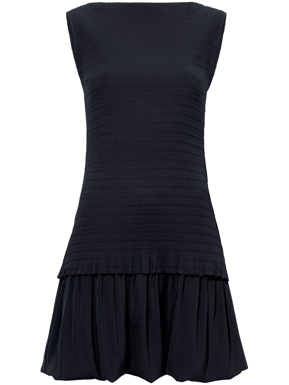 layered seersucker mini dress Highlights - Black - Seersucker texture - Layered design - Boat neck - Sleeveless - Dropped waist - Ruffled detailing - Pleated skirt - Above-knee length - Asymmetric hem Imported Composition Polyester 100%
