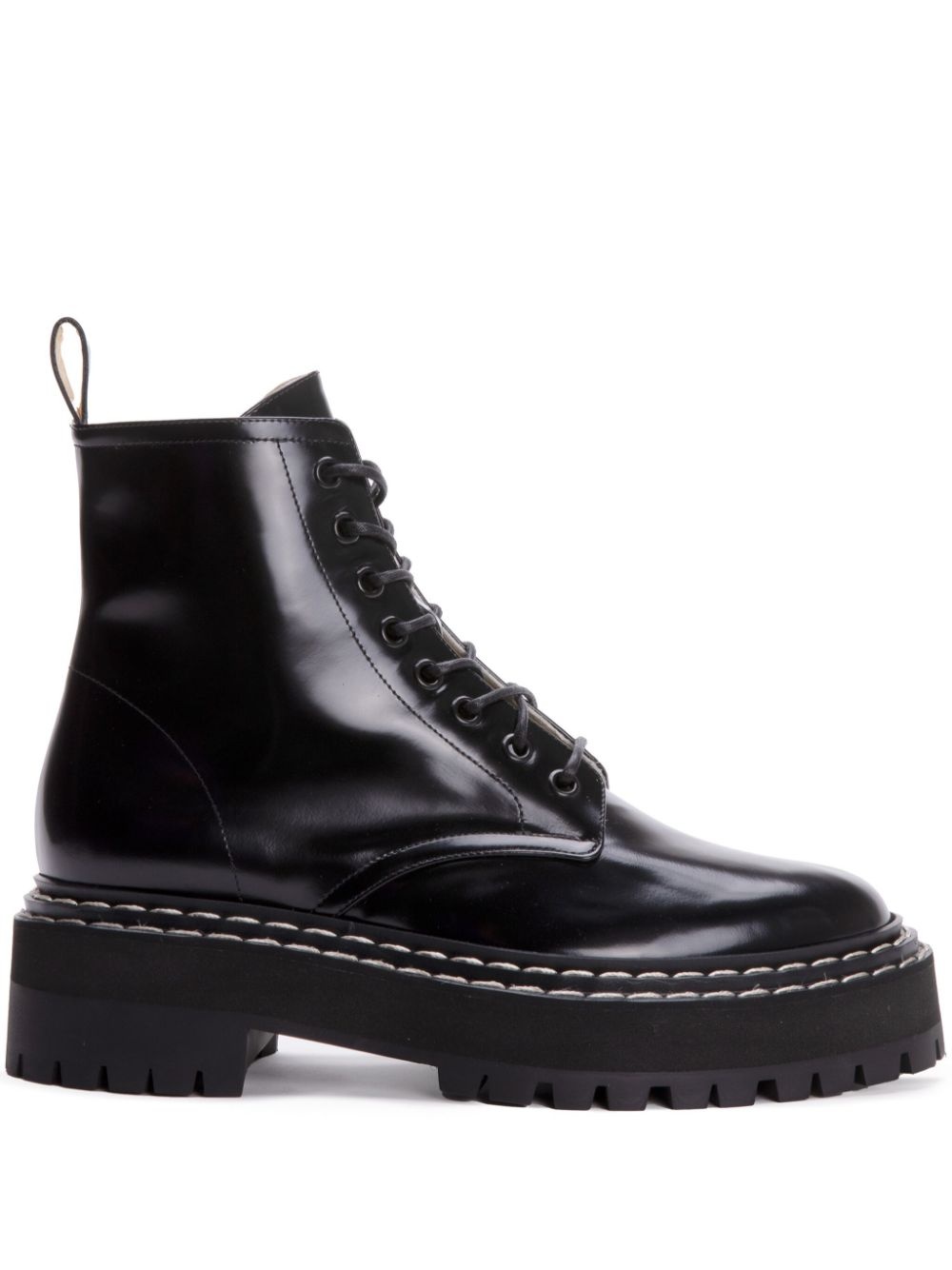 leather lace-up boots Highlights - Black - Calf leather - Grained texture - Contrast stitching - Front lace-up fastening - Pull-tab at the heel - Branded leather insole - Rubber lug sole Made in Italy Composition Leather 100% SIZE & FIT Measurement HEEL 0.98 in(2.5 cm)