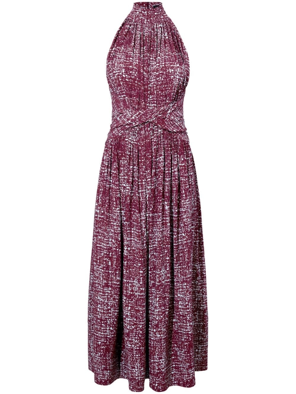 Lola dress Highlights - Oxblood red - Crepe texture - Abstract pattern print - Ruched detailing - Halterneck - Sleeveless - Fitted waistline - A-line skirt - Mid-length Imported Composition Viscose 100%
