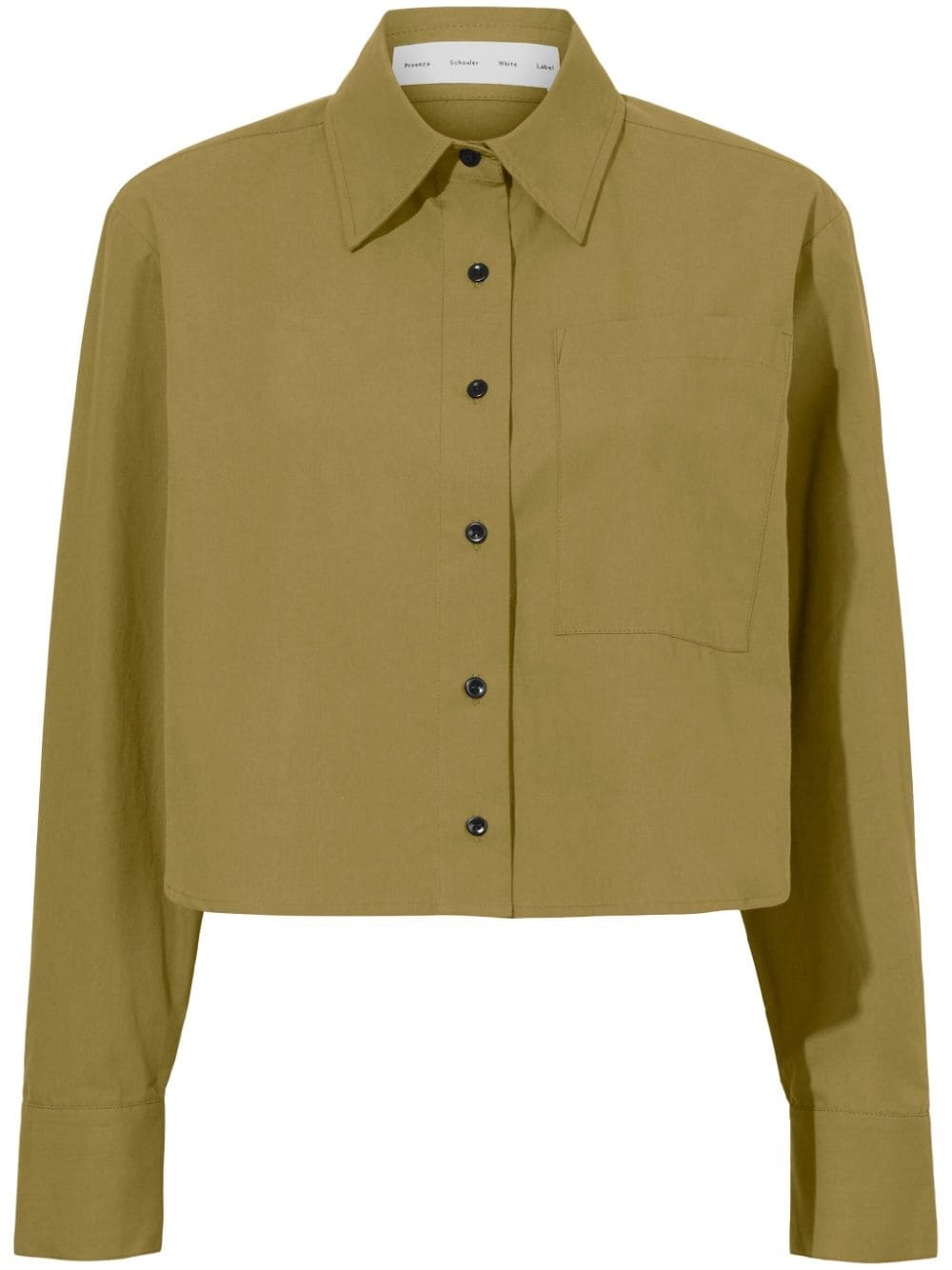 long-sleeve poplin cropped shirt Highlights - Olive green - Cotton - Poplin texture - Classic collar - Front button fastening - Chest patch pocket - Long sleeves - Buttoned cuffs - Cropped - Straight hem Imported Composition Cotton 100%