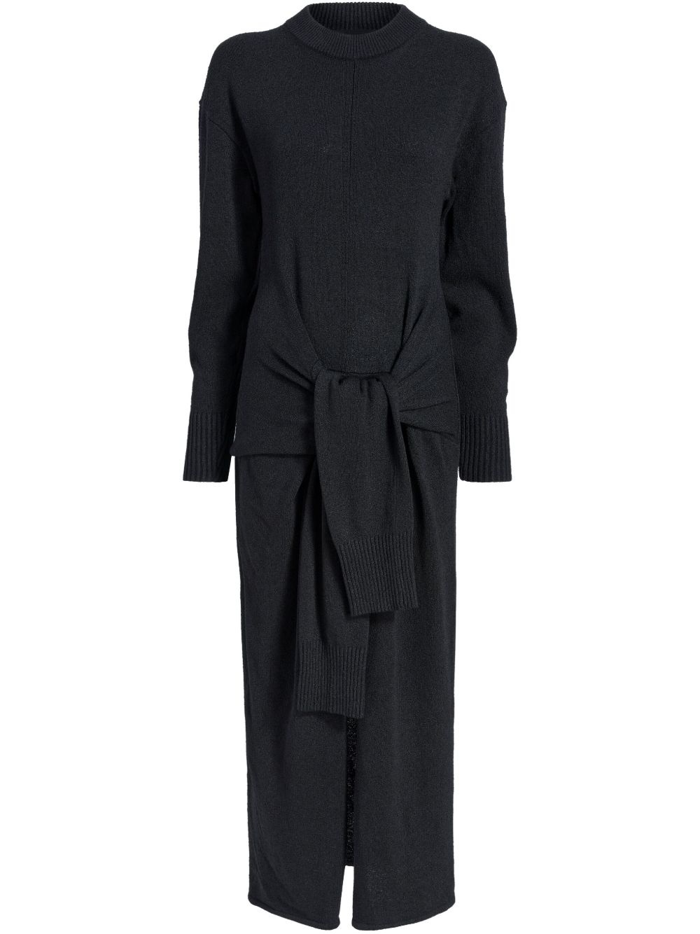 Luca midi dress Highlights - Black - Front slit - Mock neck - Draped detailing - Knot detailing Imported Composition Silk 31%, Wool 30%, Cotton 29%, Nylon 10%