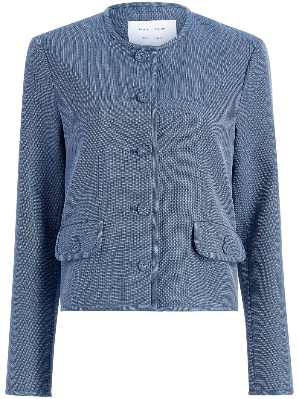 Lucas jacket Highlights - Blue - Front button fastening - Two front flap pockets - Buttoned cuffs - Collarless Imported Composition Polyester 70%, Wool 30%