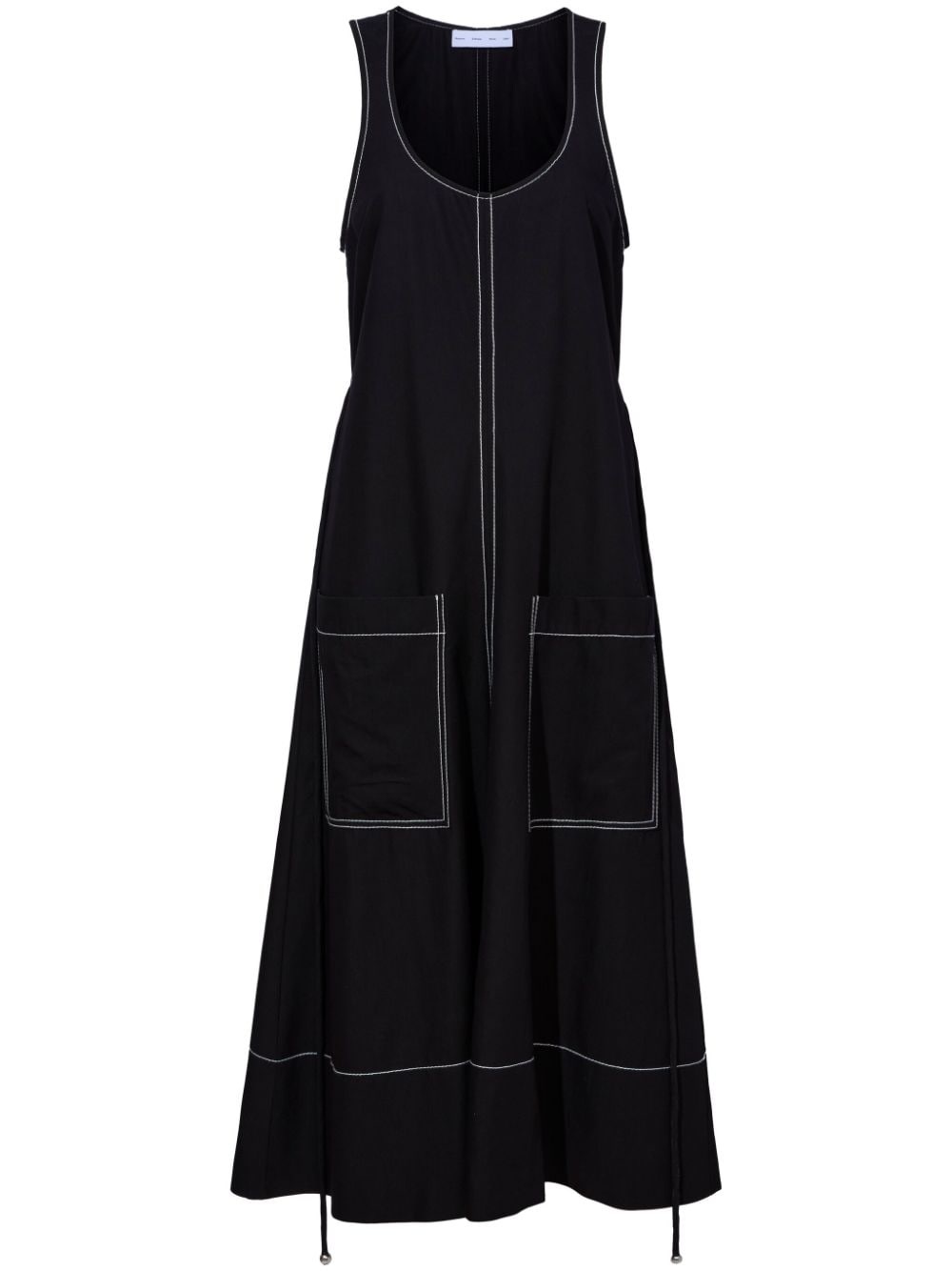 Lucy A-line midi dress Highlights - Black - Contrast stitching - A-line - Round neck - Sleeveless - Two front patch pockets - Mid-length - Straight hem Imported Composition Rayon 68%, Nylon 32% Washing instructions Dry Clean Only