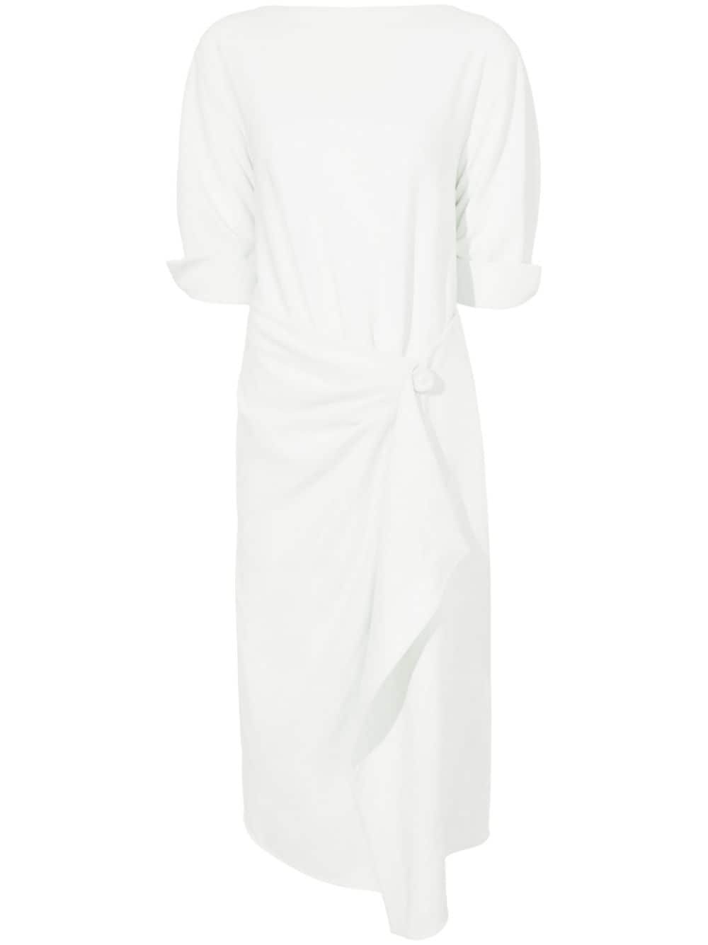 Maisie dress Highlights - White - Crepe texture - Draped design - Boat neck - Short sleeves - Mid-length - Straight hem Imported Composition Triacetate 70%, Polyester 30%