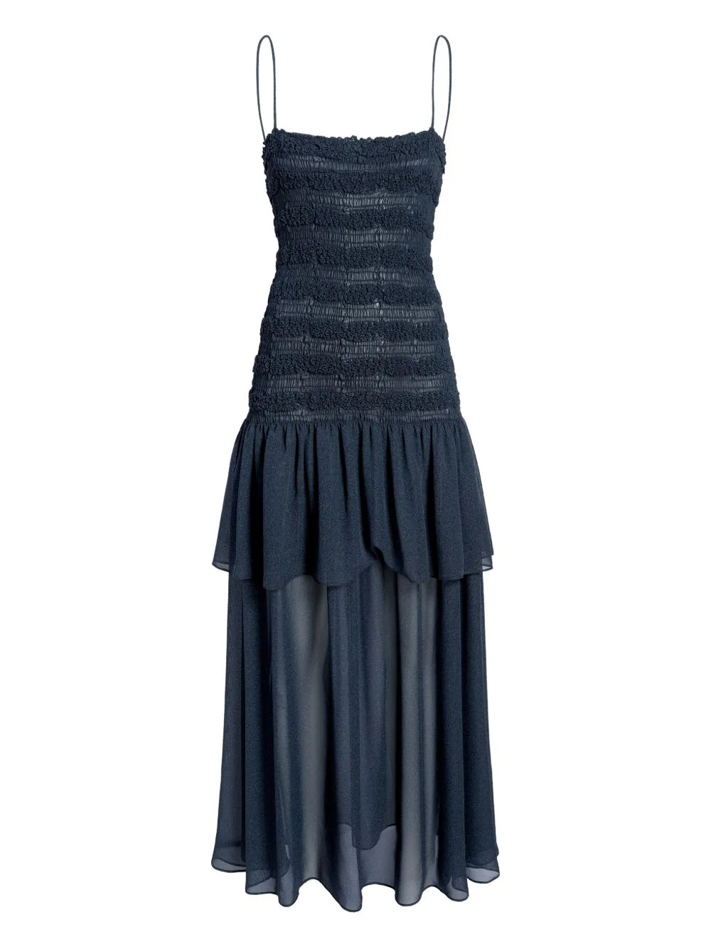 Michal ruffled midi dress Highlights - Dark navy - Ruffled detailing - Spaghetti straps - Tiered skirt Imported Composition Viscose 71%, Polyester 29% Washing instructions Dry Clean Only