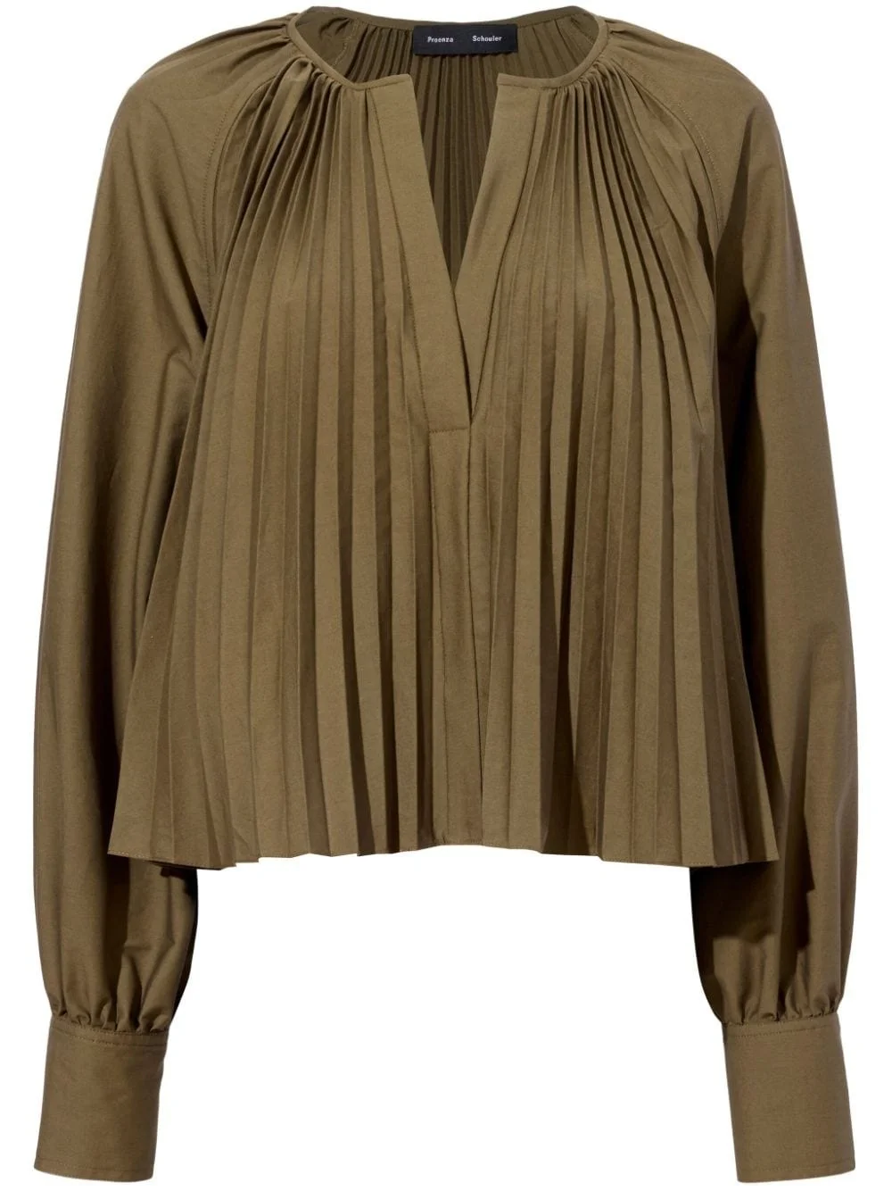 Monica pleat-detailing blouse Highlights - Olive green - Stretch-cotton - Pleat detailing - V-neck - Long sleeves - Buttoned-cuff sleeves - Straight hem Imported Composition Cotton 96%, Elastane 4%