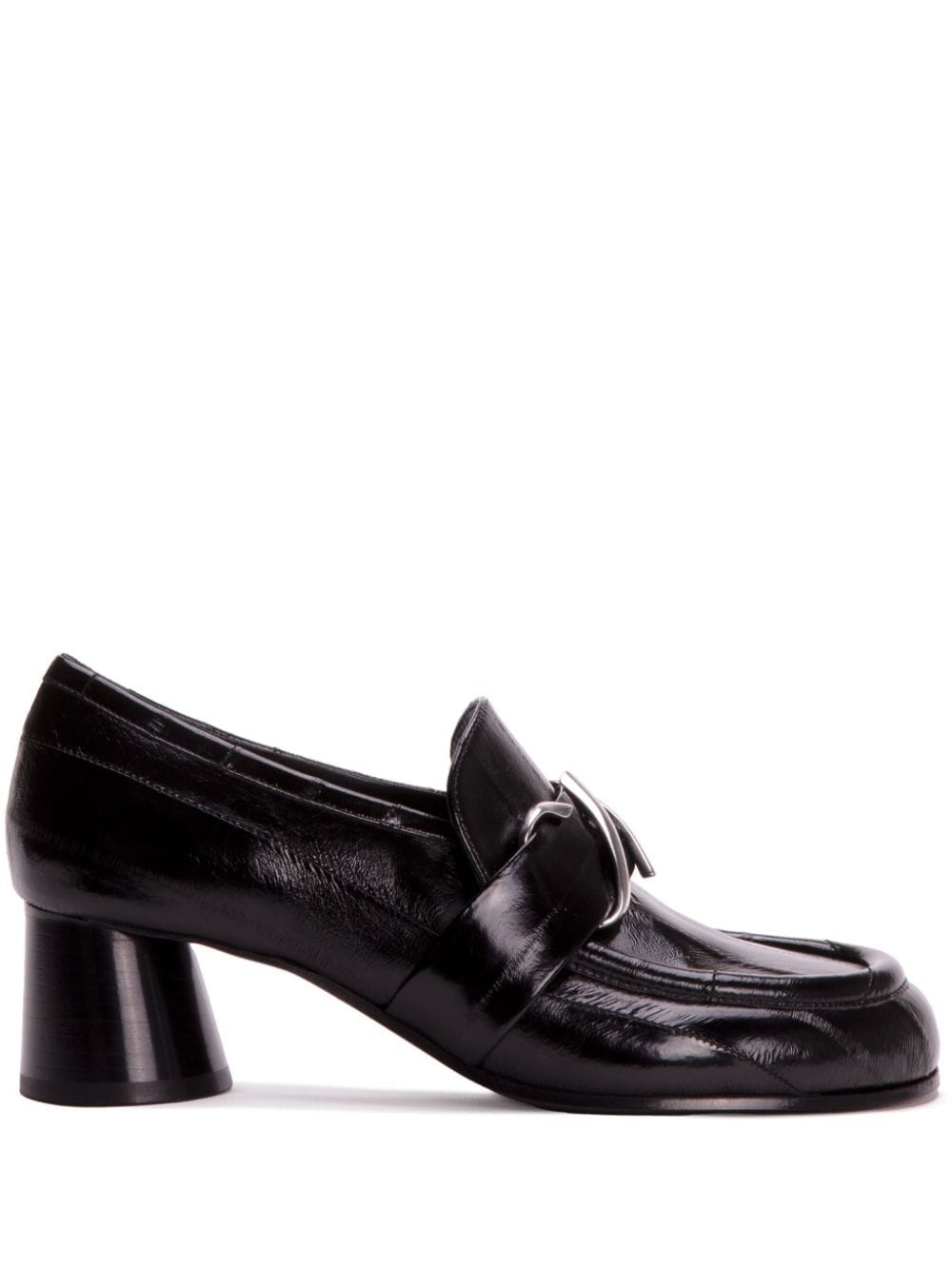 Monogram 55mm leather loafers Highlights - Jet black - Lambskin - Smooth grain - Panelled design - Silver-tone hardware - Chain-link detailing - Almond toe - Slip-on style - Branded leather insole - 55mm block heel - Leather sole Made in Italy Composition Outer: Lambskin 100% Lining: Lambskin 100% Sole: Leather 100% SIZE & FIT Measurement HEEL 2.16 in(5.5 cm)