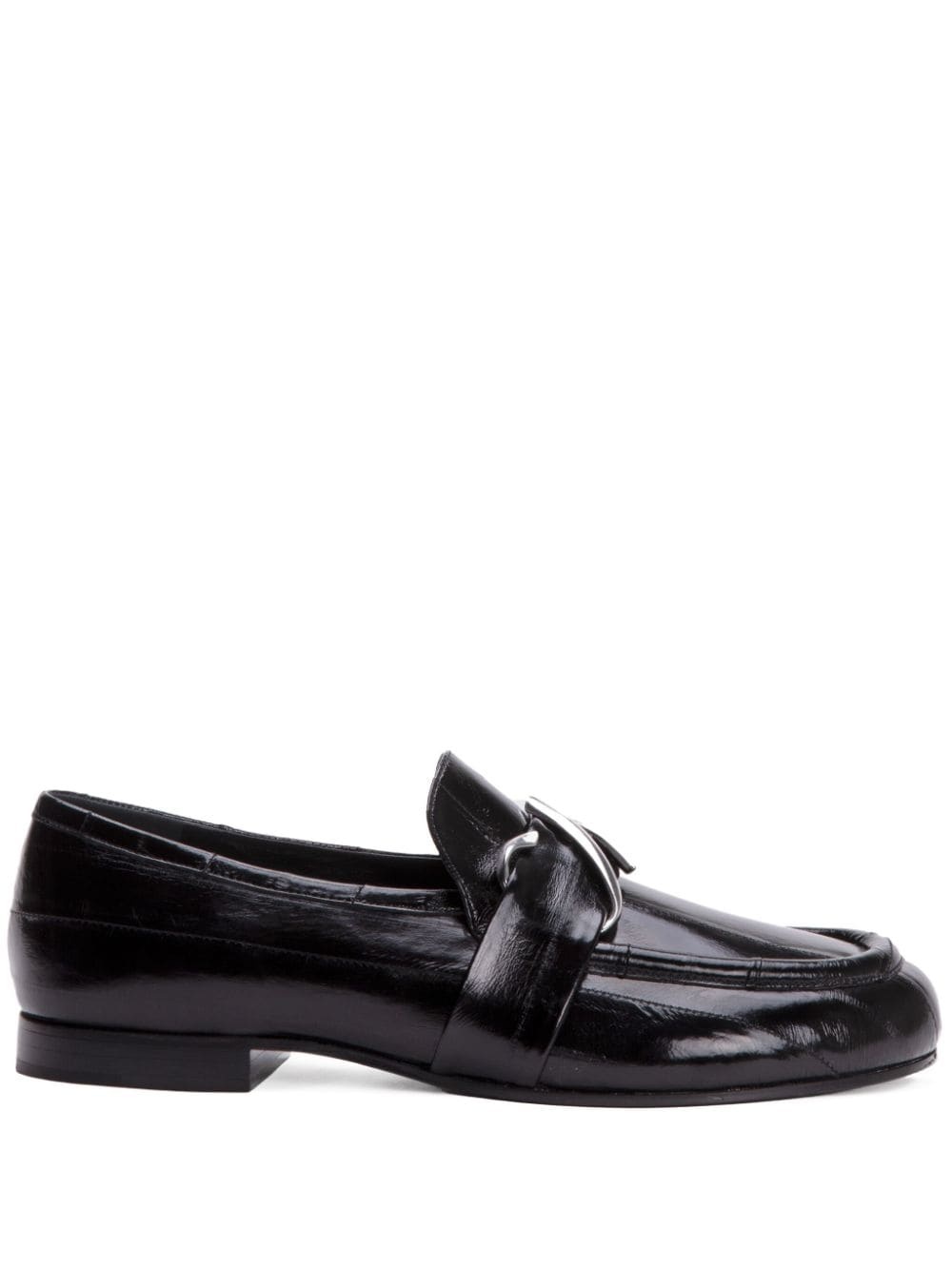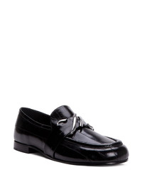 monogram detail loafers Highlights - Black - Leather - Logo plaque - Round toe - Leather lining - Branded leather insole - Stacked heel - Leather sole Made in Italy Composition Outer: Eel Skin 100% Lining: Eel Skin 100% Sole: Leather 100%