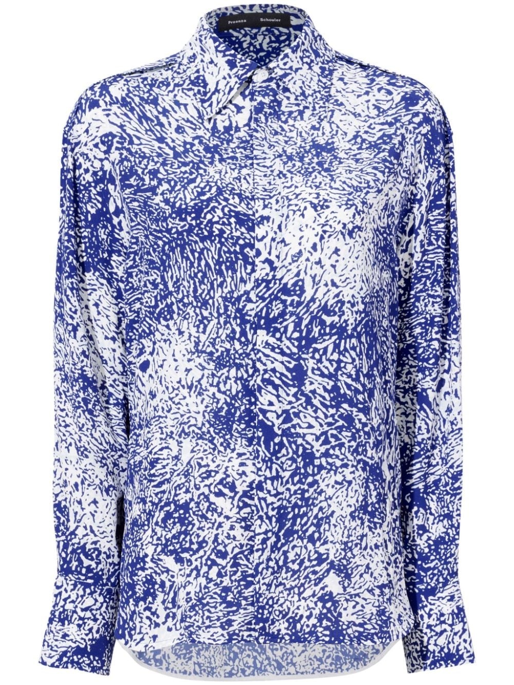 Norman abstract-print blouse Highlights - Royal blue - Abstract pattern print - Classic collar - Concealed front fastening - Long sleeves - Buttoned-cuff sleeves - Straight hem Imported Composition Viscose 100%
