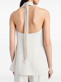 halterneck top Highlights - Off-white - Halterneck tie fastening - Sleeveless - Open back - Flared hem Imported Composition Acetate 100%, Polyester 100% Washing instructions Read Manufacturer Guidelines