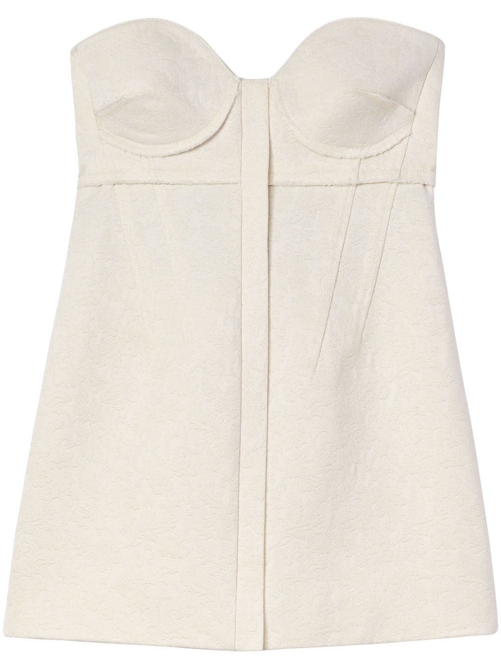 patterned-jacquard bustier top canvas white cotton-wool blend patterned jacquard dart detailing side slit bustier-style neckline sleeveless Imported Composition Cotton 71%, Wool 29%